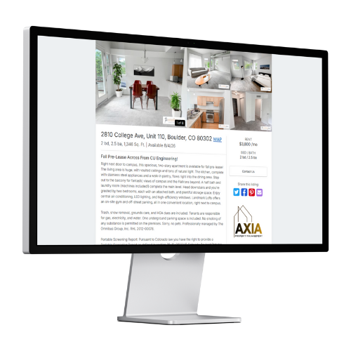 Property management, maintenance and tenant selection/leasing are time-consuming projects you shouldn’t have to do on your own. Our property management services and expertise for real estate owners have been held in high regard by our clients. Take advantage of our residential property management solutions and you will agree that Axia makes it that much easier to make money through property ownership in Boulder and Denver.